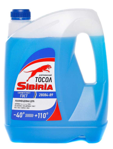 Жидкость охлаждающая низкозамерзающая «Тосол SIBIRIA -40» предназначена для охлаждения бензиновых и дизельных двигателей внутреннего сгорания и в качестве рабочей жидкости в теплообменных агрегатах, работающих при низких и умеренных температурах. Надежно защищает металлические детали системы охлаждения от коррозии. Применять в соответствии с инструкцией по эксплуатации автомобиля и теплообменных агрегатов. В охлаждающей системе используется при температурах от -40°С до +115°С.