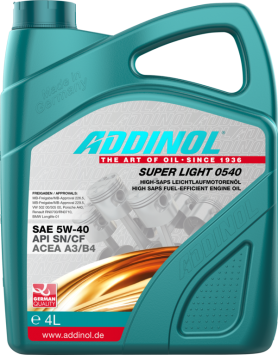 ADDINOL Super Light 0540 — это топливосберегающее моторное масло легкого хода класса SAE 5W-40.