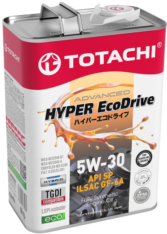 Инновационное, полностью синтетическое, ресурсосберегающее моторное масло, обеспечивающее экономию топлива. Продукт разработан для использования в бензиновых двигателях последнего поколения, с турбонаддувом и прямым впрыском бензина (TGDI), гибридных автомобилях типов EREV, REEV, PHEV, BAHV, HEV, подходит для применения во всех транспортных средствах, работающих в тяжелых городских условиях с типичным режимом «старт -стоп».TOTACHI Hyper Ecodrive 5W-30 обеспечивает великолепную защиту от износа, стойкость к высокотемпературному окислению, отличные моющие свойства. Продукт идеален для использования в двигателях с высокой удельной мощностью, требующих надежного масла. Отличные фрикционные свойства дают улучшенную экономию топлива моторному маслу с категорией SAE 5W-30. Гарантированная защита от преждевременного зажигания на низких оборотах (LSPI) и износа цепи ГРМ. TOTACHI Hyper Ecodrive 5W-30 производится на основе уникальной антифрикционной технологии ZFMTM Соответствует допуску масел ACEA A5/B5.